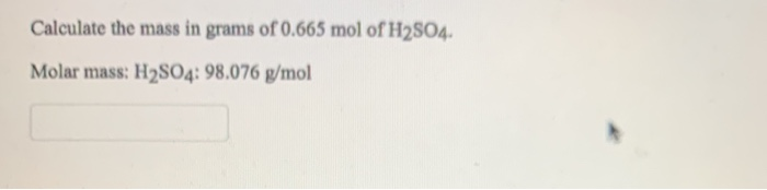 Solved Calculate The Mass In Grams Of 0 665 Mol Of H2s04 Chegg Com - This is how to calculate molar mass (average molecular weight), which is based on isotropically weighted averages.