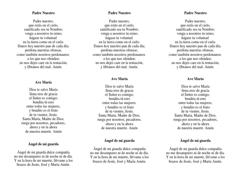 Padre Nuestro Y Ave María En Latín - Perdona nuestras ofensas, como tambien nosotros perdonamos a los que nos ofenden; Padre Nuestro Y Ave María En Latín - Benedicta tu in mulieribus, et benedictus fructus ventris tui, iesus.